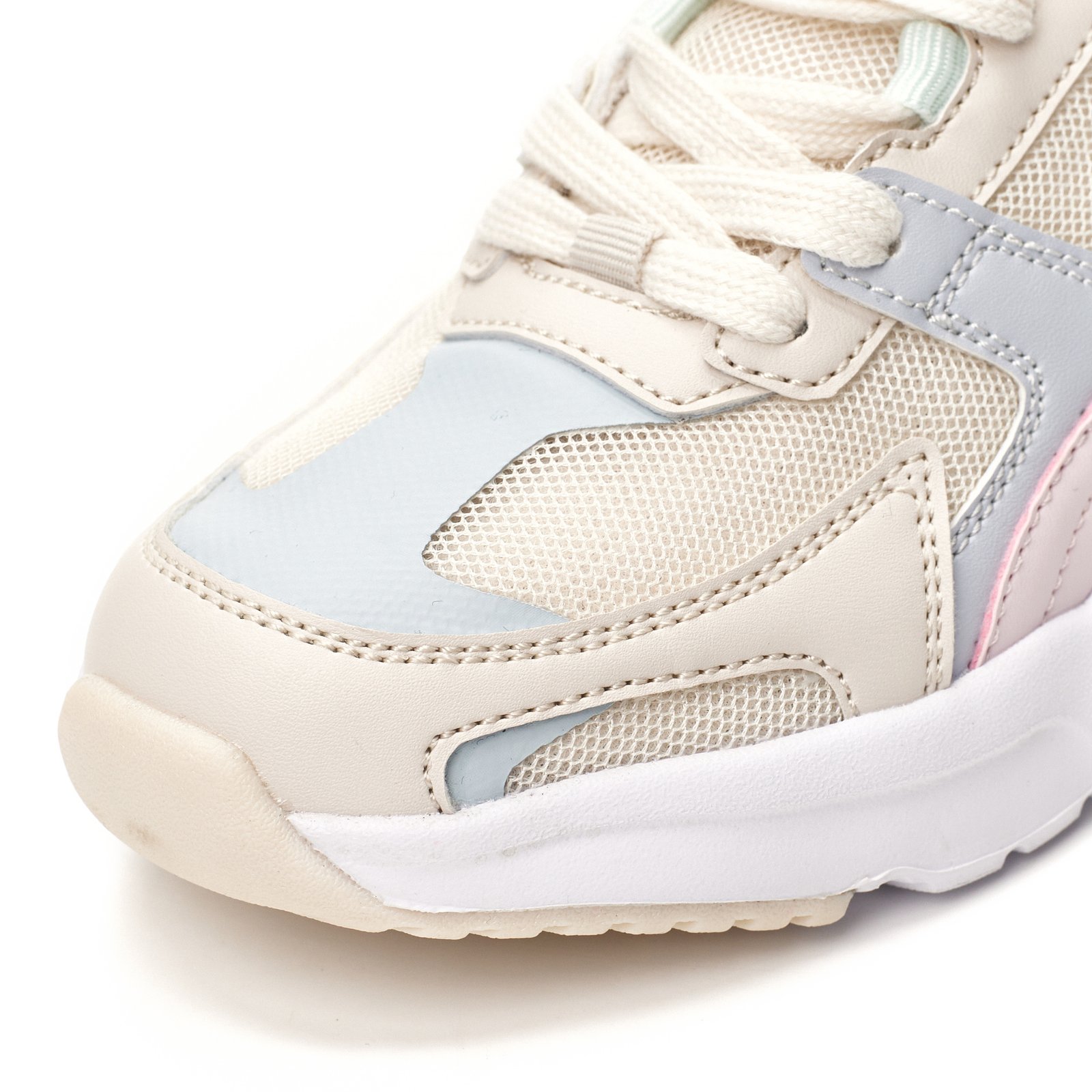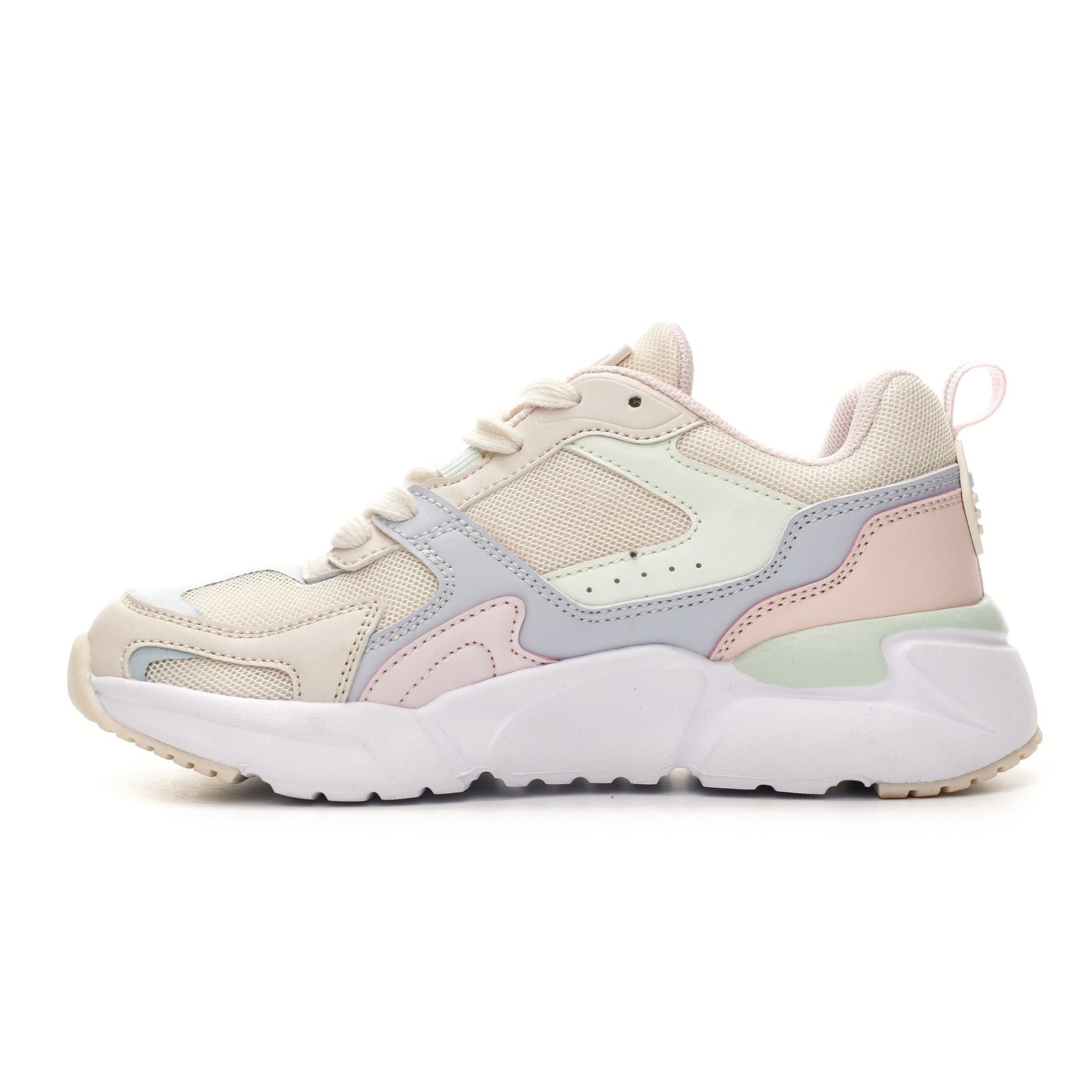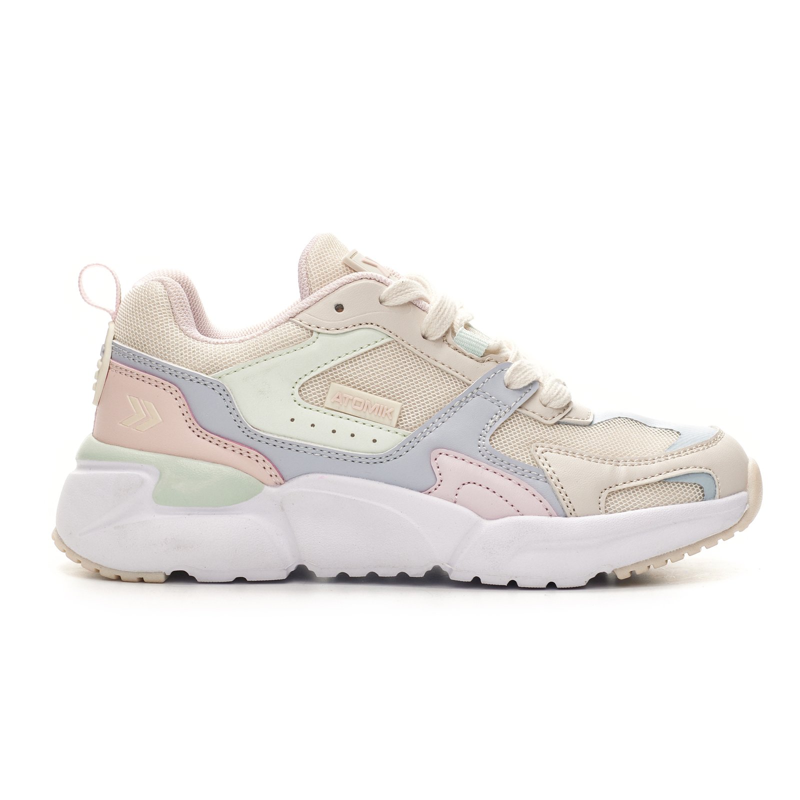 Zapatilla casual acordonada multicolor. Capellada de sintético simil cuero + mesh. Con detalles estampados. Suela de phylon liviana con suelin de TR resistente. Con plantilla con memoria.