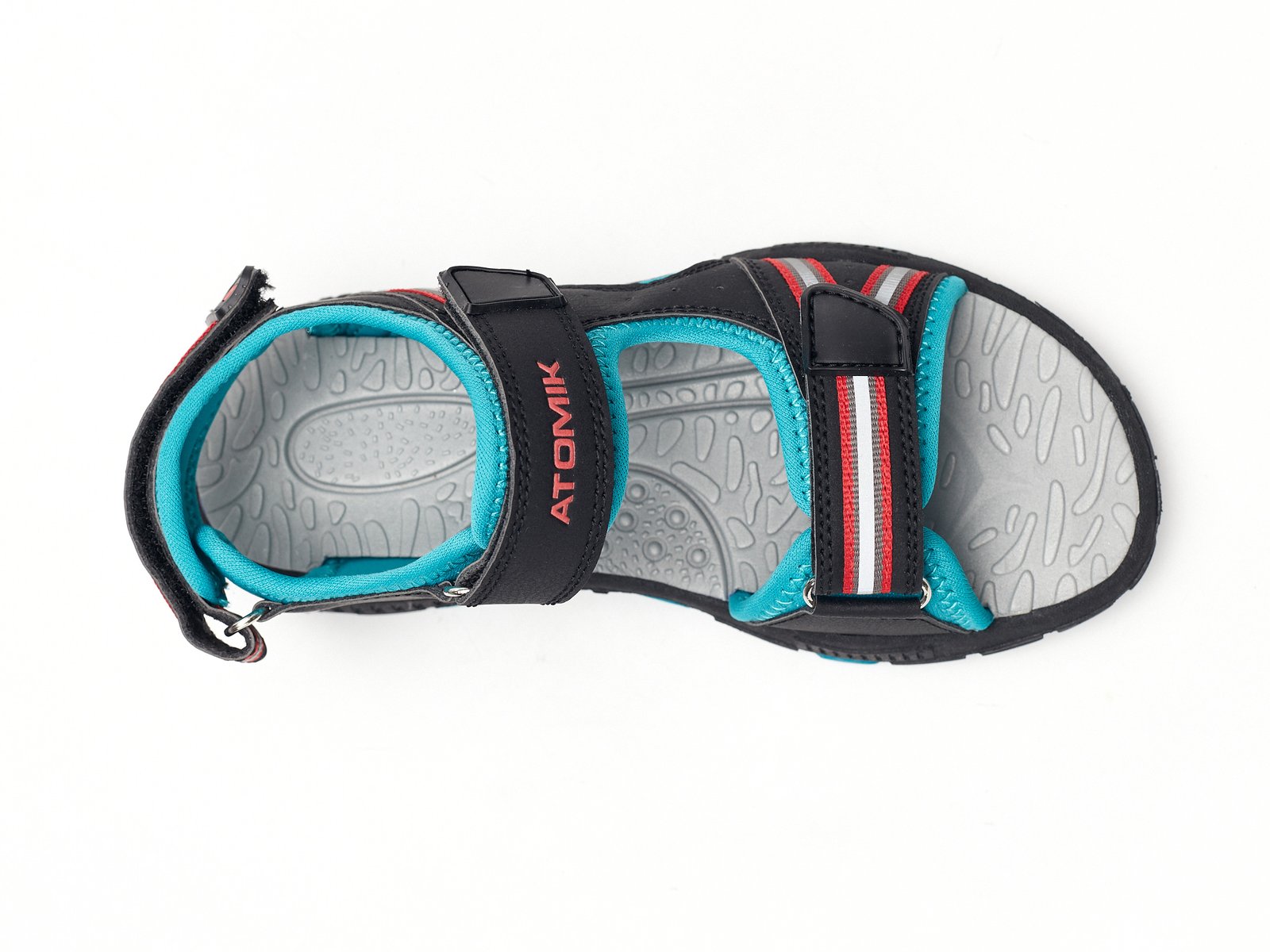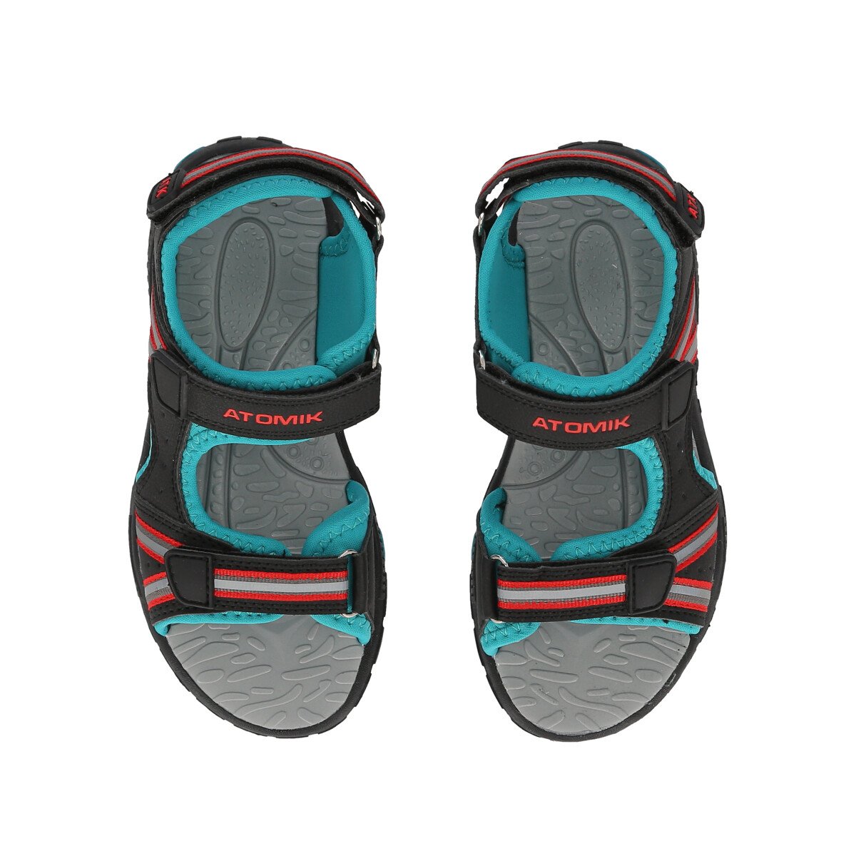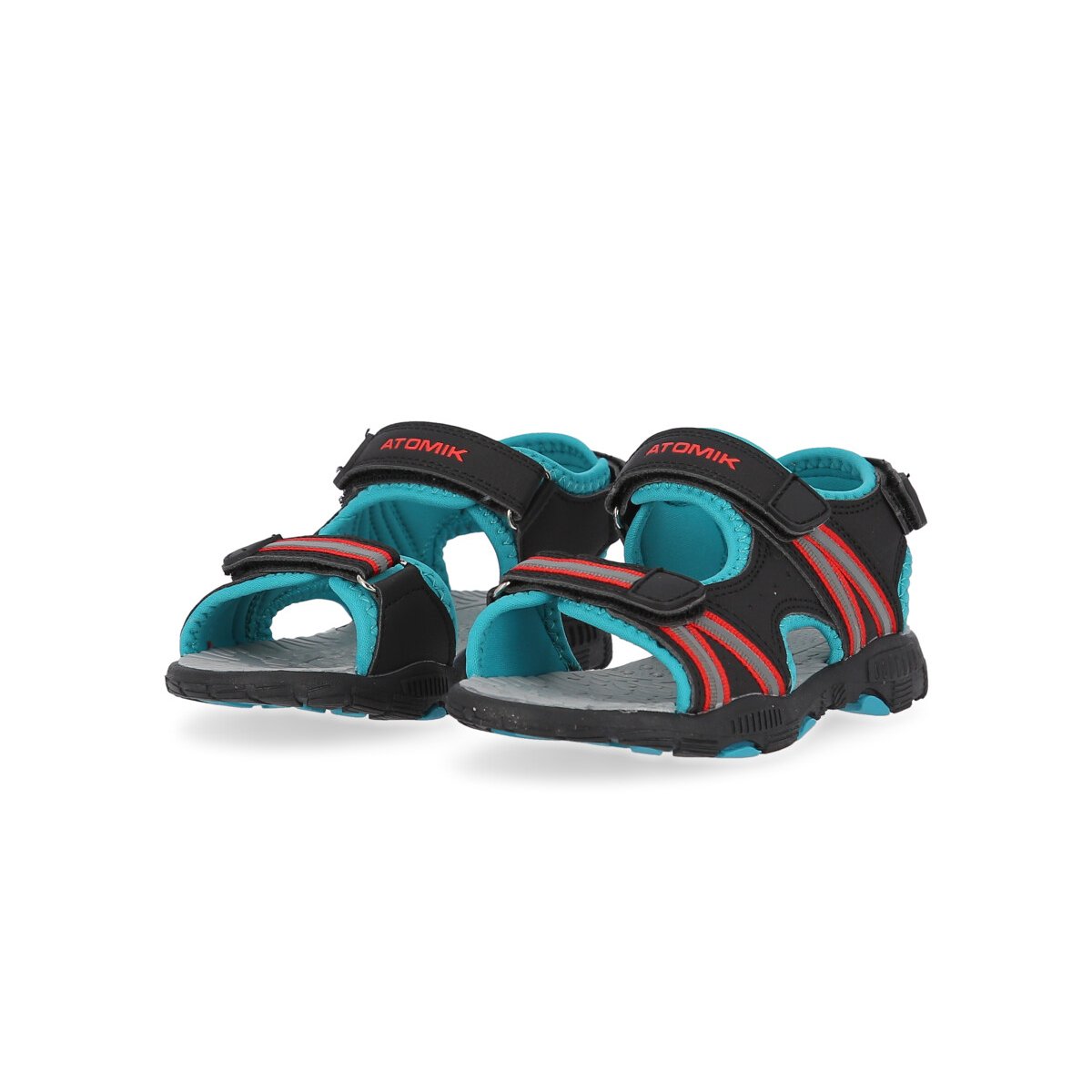 Estas sandalias Atomik están hechas en materiales livianos para que nada se interponga en sus momentos de juego y resisten al agua. Con triple abrojo para asegurar el ajuste y practicidad a la hora de poner y sacar. La suela es ligera y flexible. Para mucha diversión bajo el sol!