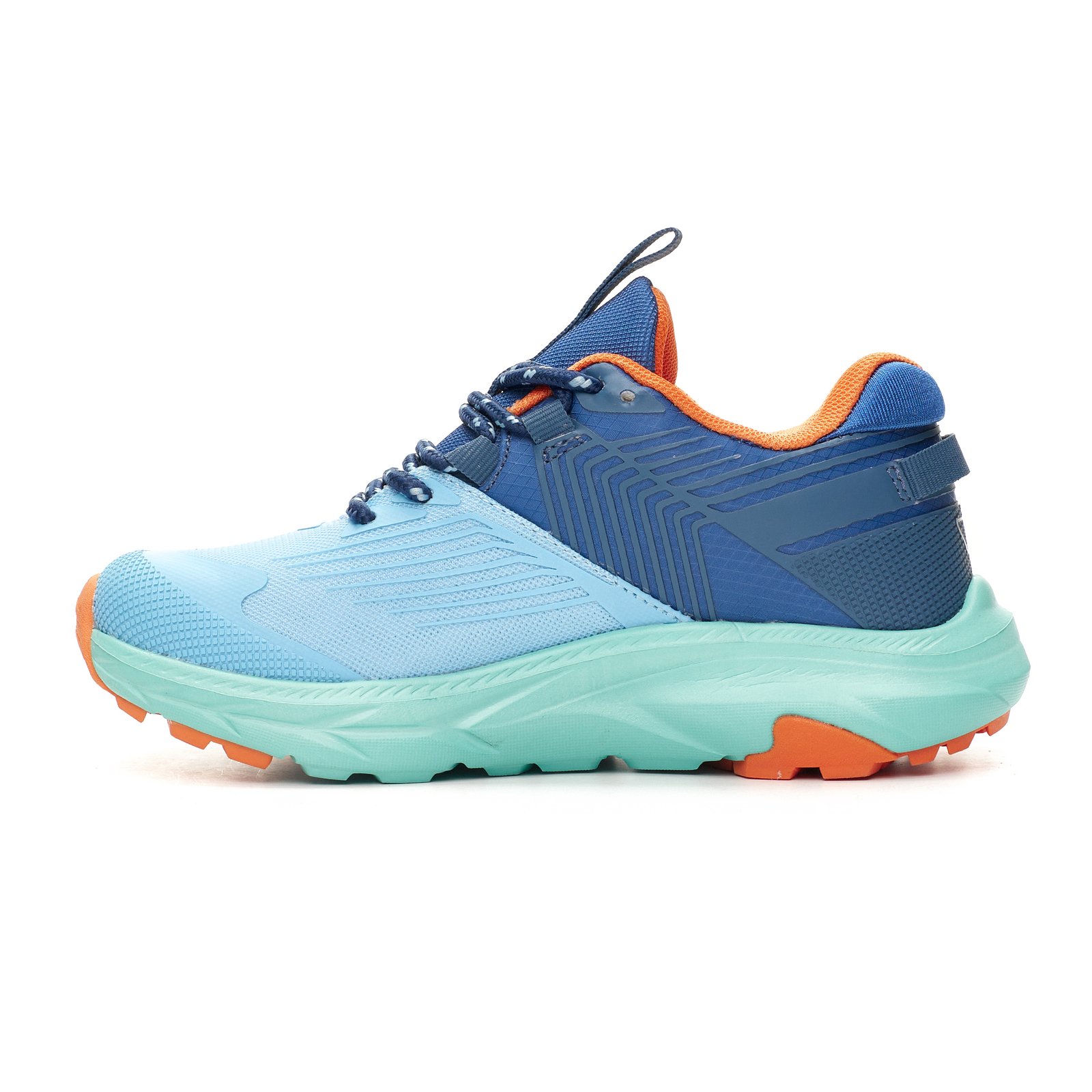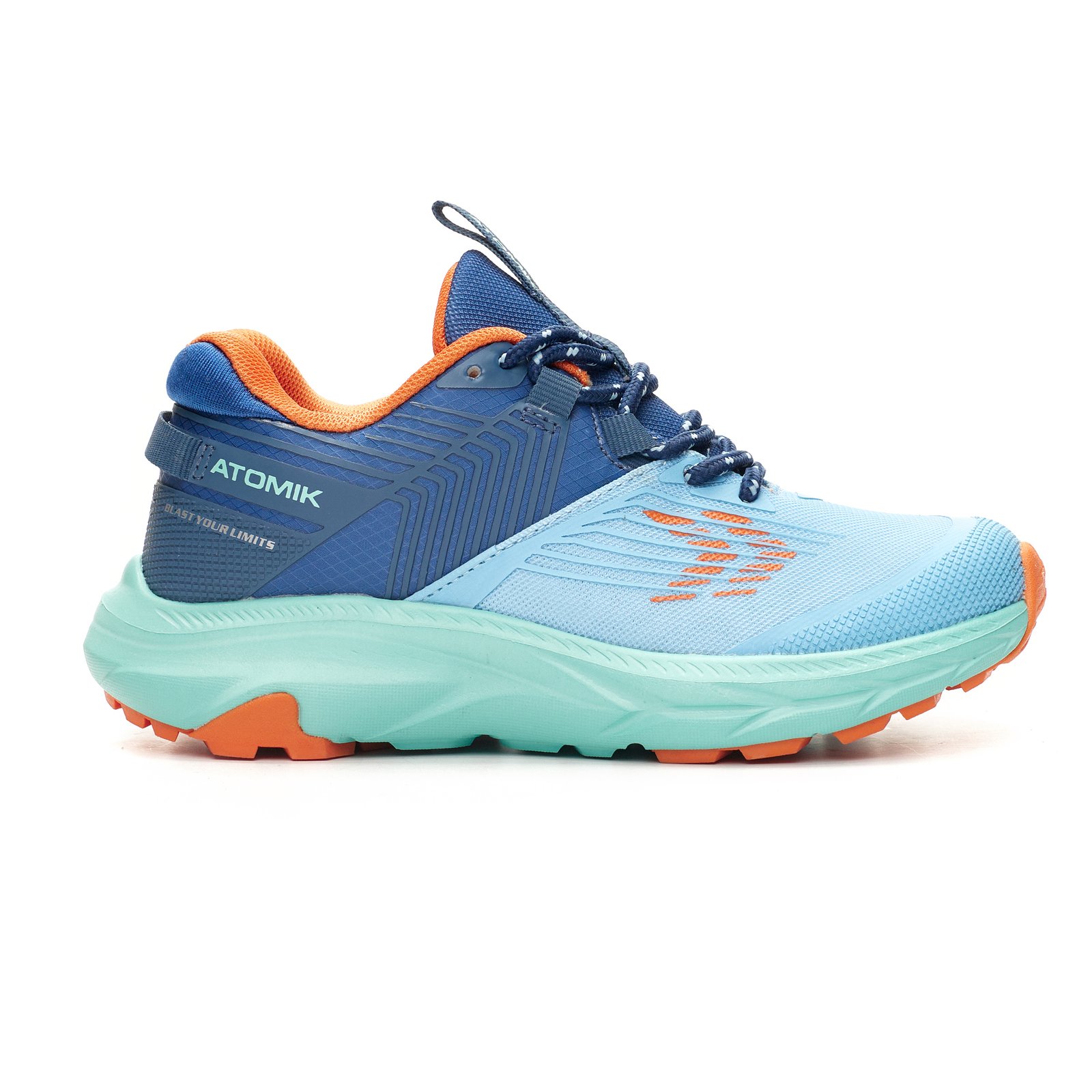 Zapatilla trail con cordón. Capellada de mesh. Detalles estampados. Suela de phylon y suelin de TR antideslizante bicolor.