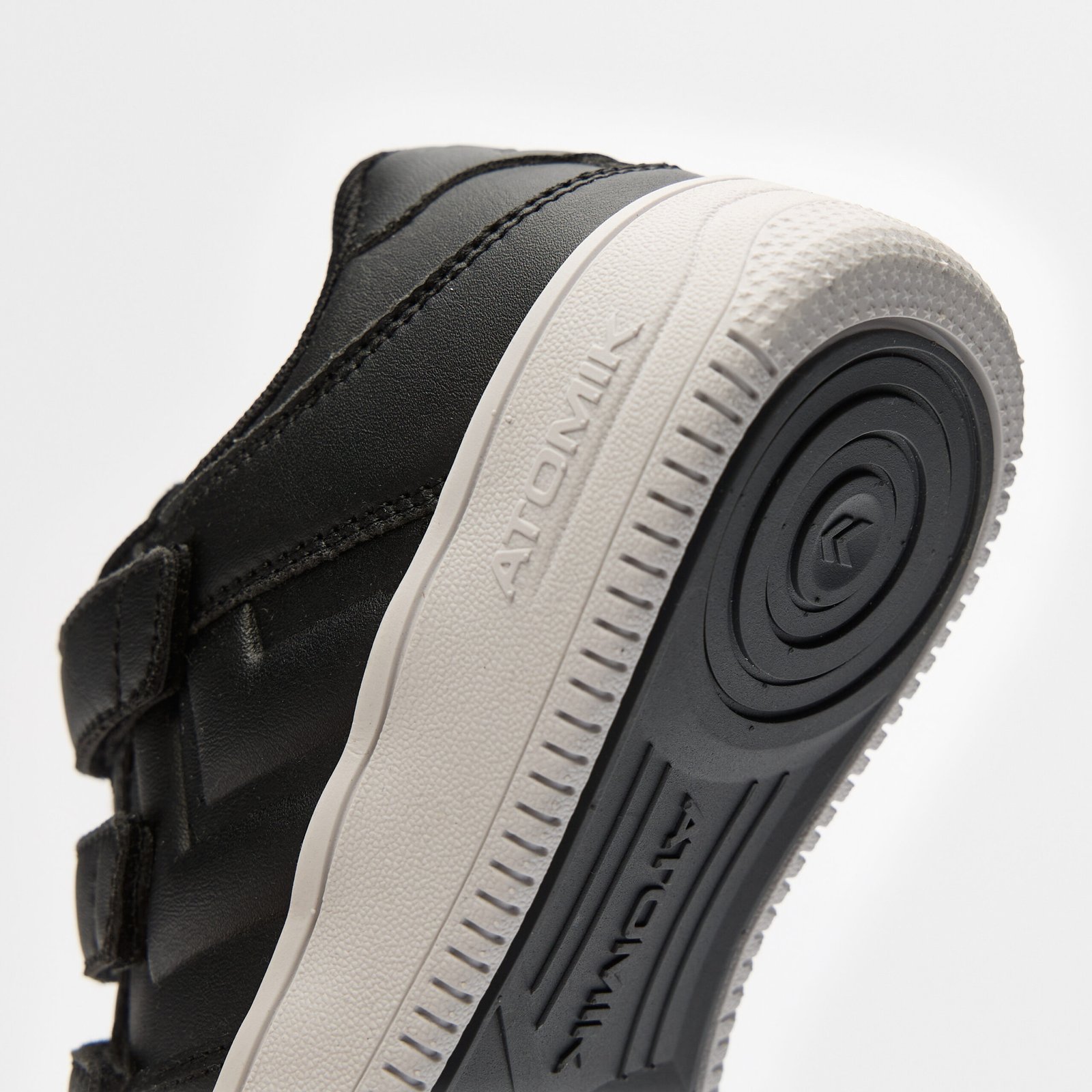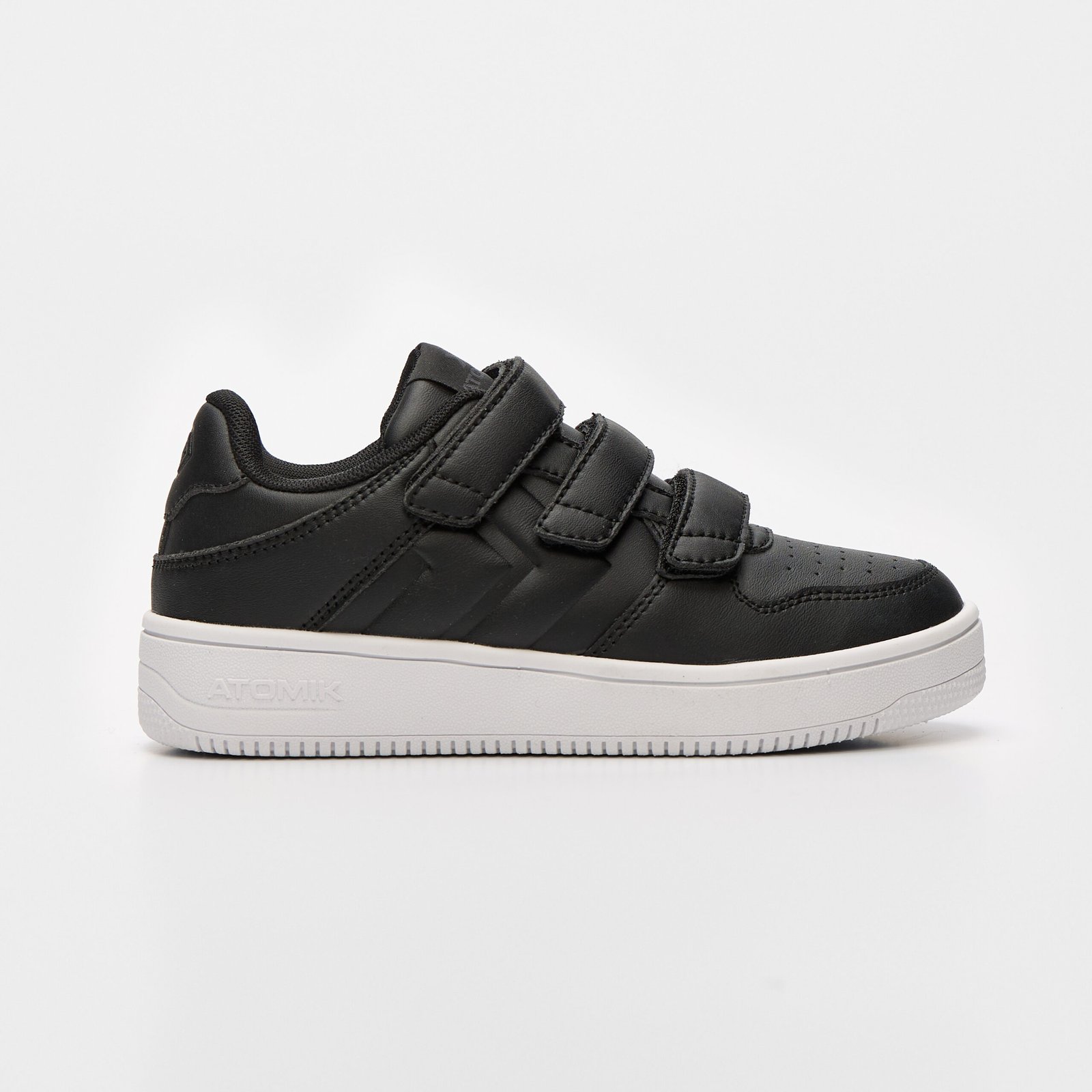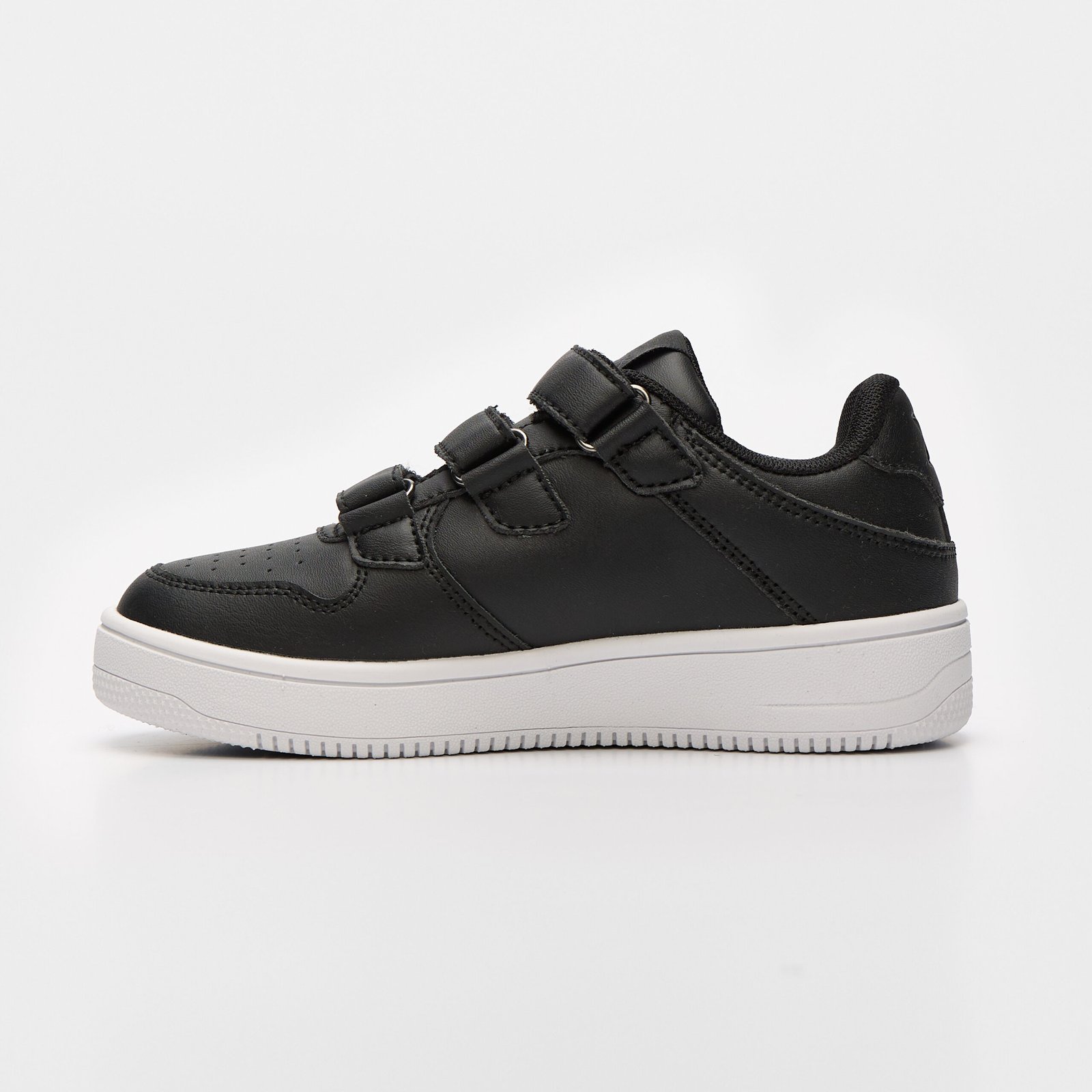 Zapatilla tipo skater con tres velcros. Capellada de sintético símil cuero con puntera de cuero y suela de phylon cosida y suelin TR bicolor.